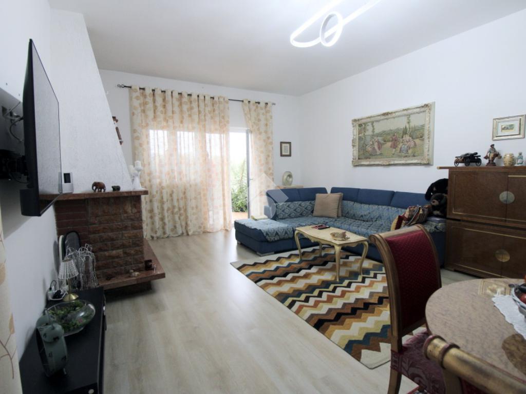 Internamente si compone di ingresso, ampio ripostiglio, cucina abitabile con camino, grande soggiorno con termo-camino, due camere da letto e bagno con doccia.